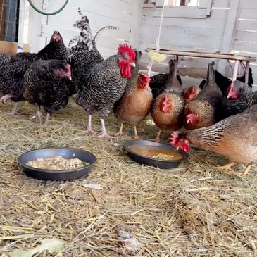 This flock is protected by Lightning McQueen and his ladies lay blue eggs ladies. There are also two turkens (Naked-Neck) and they lay brown eggs. This pack is currently grazing the yard in a custom tractor for fresh grass and fertilizing.