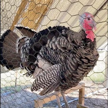 Tom Turkey, don’t worry, he's more intimidating than he actually is. This guy loves peanuts! If you didn't know, a male turkey is called a Tom.